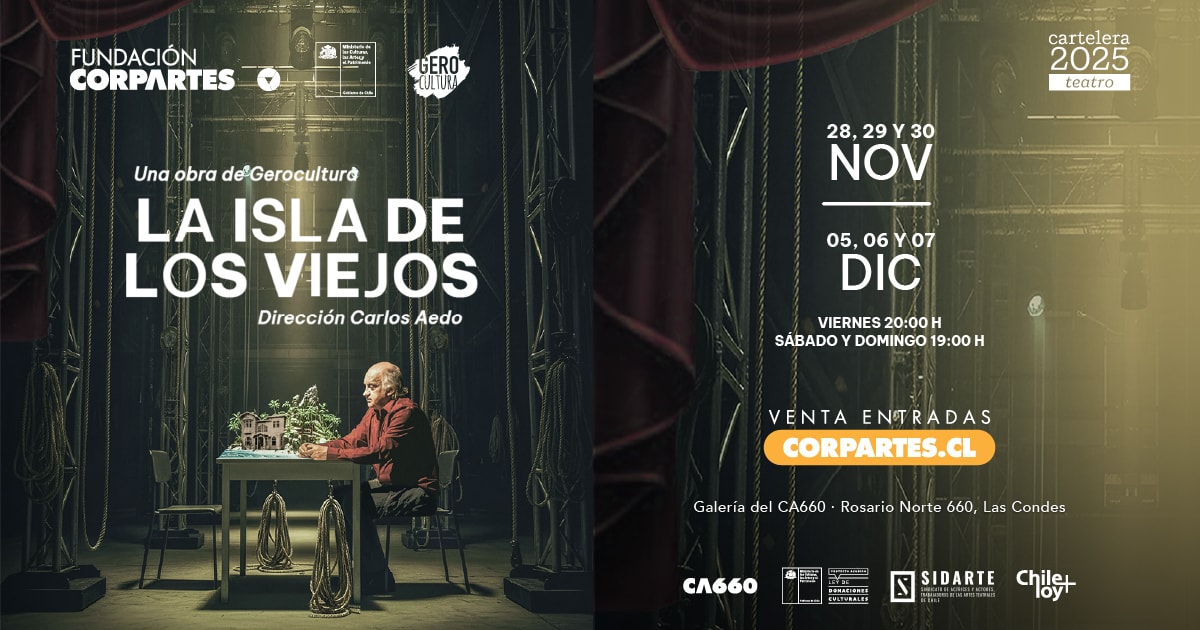 La obra “La Isla de los Viejos” presentada por Fundación CorpArtes, es un proyecto acogido a la Ley de Donaciones Culturales del Ministerio de las Culturas, las Artes y el Patrimonio.